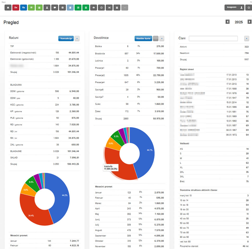Glavno okno sistema Access Management Dovolilnica Kontrole Statistika